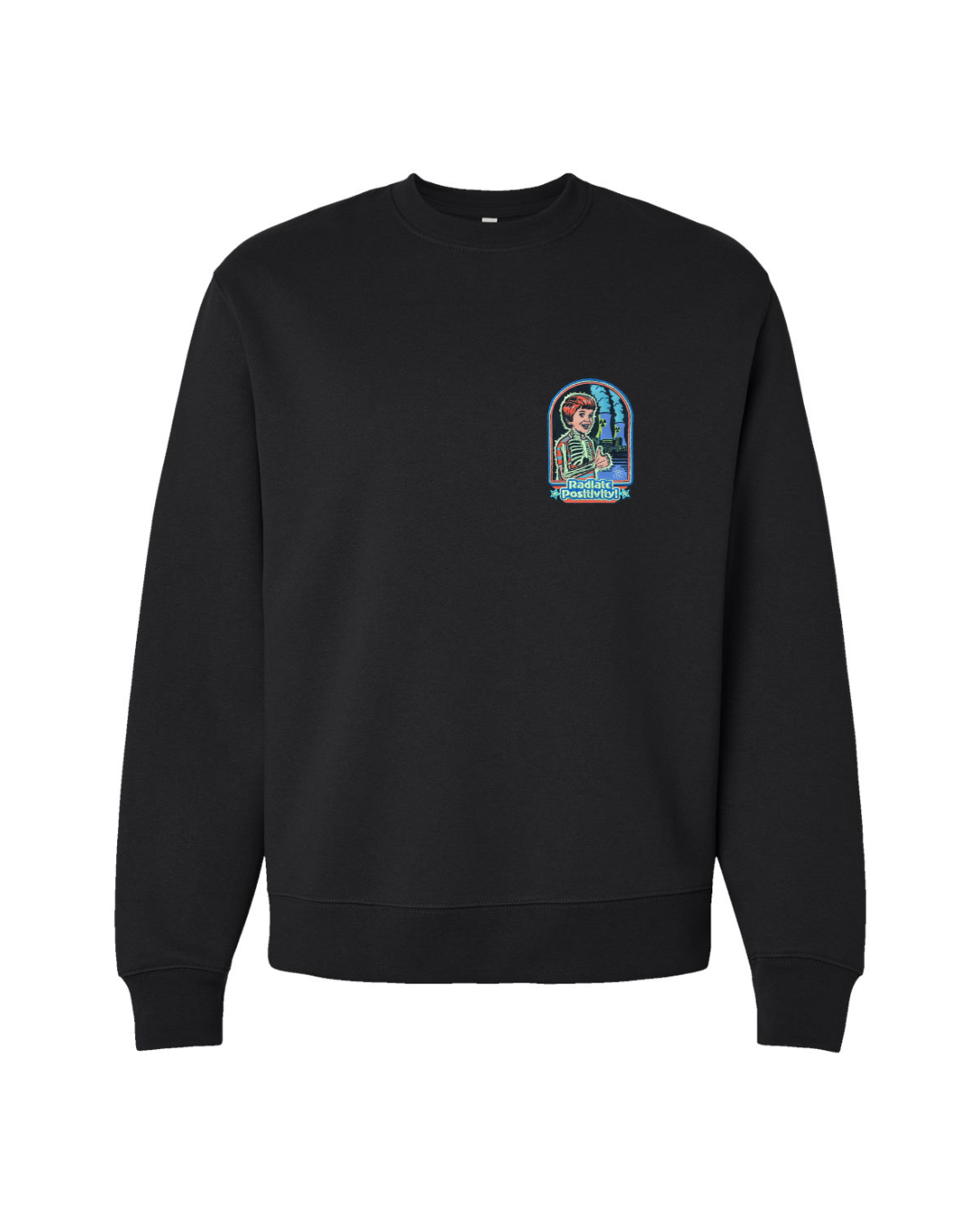 We promise you will be glowing with positivity when you throw this cozy crewneck on...